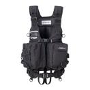 サポーターの専用D環にベルトを通し吊って、さらにサーポーター全体を細いベルト(プラスチックバックル付き)で吊って、更にベスト本体のD環とサポーターを結束バンドで吊るという3段構え。